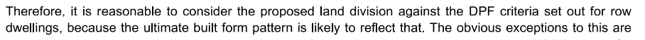 The staff report says that the land division criteria should be considered as a Row Dwelling built form.