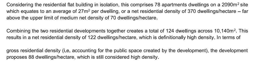 The 78 apartments on the site create a density of 370 dwellings / Ha, well above the upper 70 for medium density.