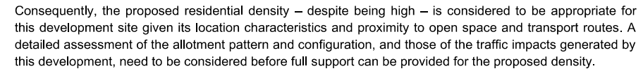 Even for the whole development combined it is 122 dwellings / ha and that is certainly High Density and not the desired medium density.