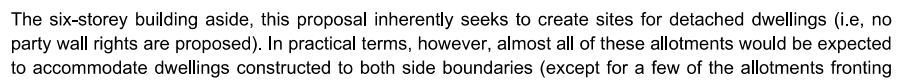 The purchasers may decide not to build boundary to boundary, and even if they do, they will still be Detached Dwellings needing a minimum site area of 330m2 and not the average proposed of 175m2.