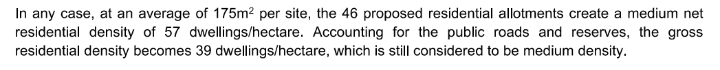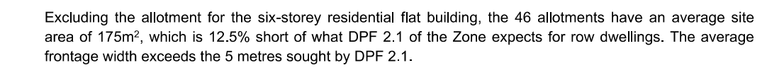 All the 43 smaller allotments fail to meet the requirements of DPF 2.1 for detached dwellings, being between 73m² to 255m². Most also fail the 200m2 requirement for Row dwellings.