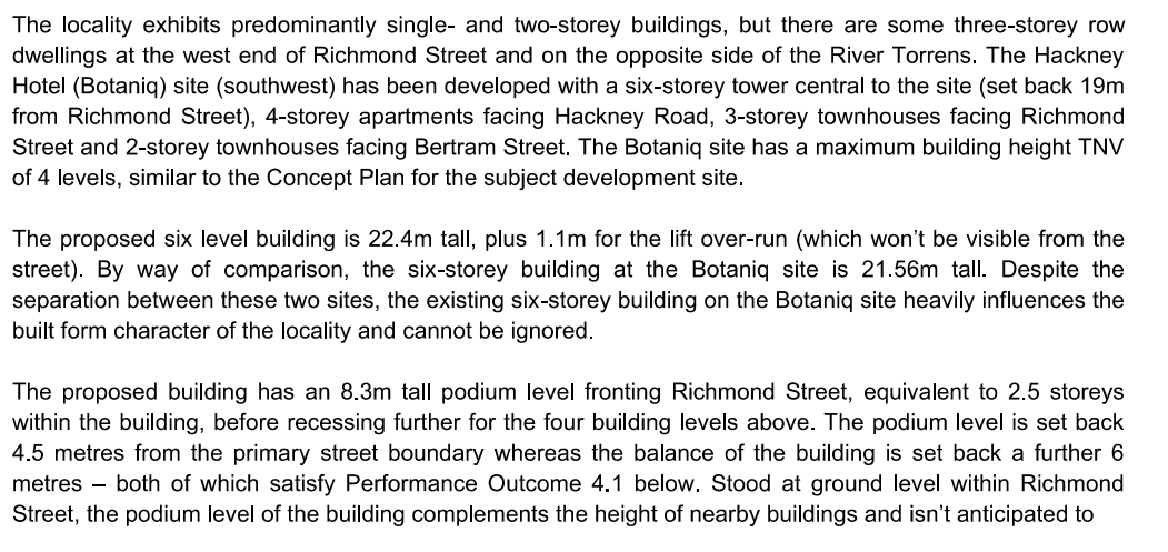 The Botaniq was approved by the Development Assessment Commission in 2021, and not by the NPSP CAP or the earlier DAP, and under different planning rules.