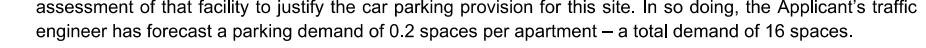 The bus stop about 300 metres away is not a good reason for a low provision of car parking.
